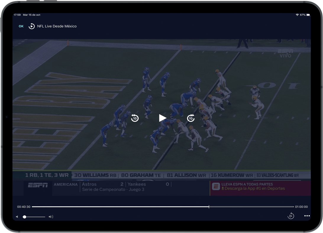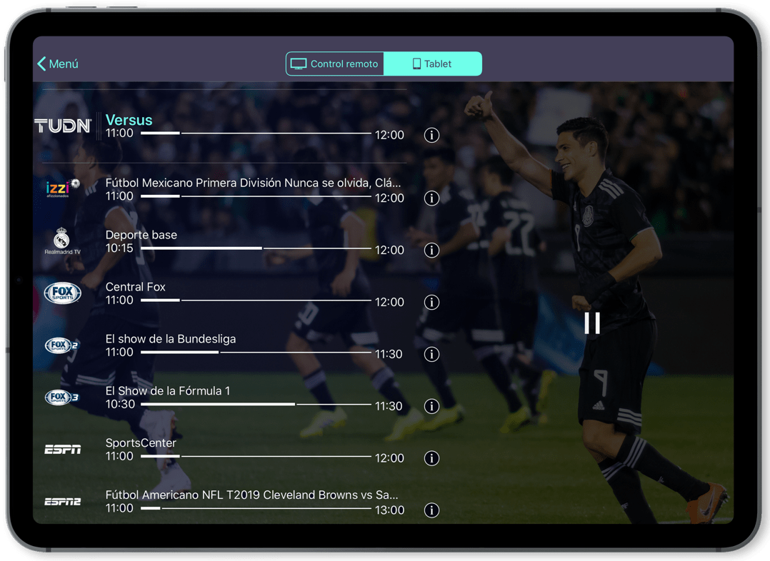 Con la app izzi go, accede a más de 60 canales en vivo como TUDN, Fox Sports, NFL Network y muchos más. Además, disfruta de miles de horas con la programación de izzi tv, ViX Premium, Max, y otros.